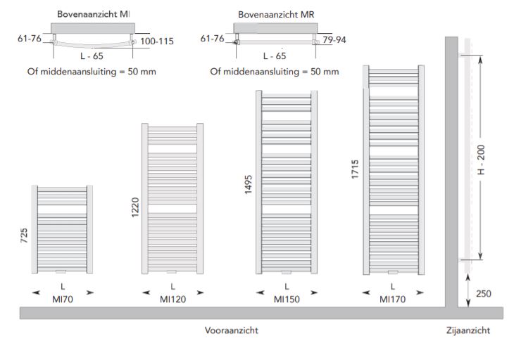De elegante Milano zorgt voor comfort en warmte in de badkamer. De verticale collectorbuizen met daartussen gebogen of rechte, ovale horizontale elementen, bieden genoeg plaats voor het drogen en opwarmen van handdoeken. De Milano is opgebouwd uit twee trapeziumvormige verticale collectorbuizen met daartussen gebogen of rechte, ovale horizontale buizen. Indien de 50mm onderaansluiting niet wordt gebruikt, dan geeft het onderste element minder warmte af dan de overige elementen. Het ophangmateriaal is in de kleur van de radiator en wordt samen met het ontluchtingsventiel meegeleverd. De radiator wordt na een grondige roestwerende voorbehandeling voorzien van een poeder-epoxylaag.