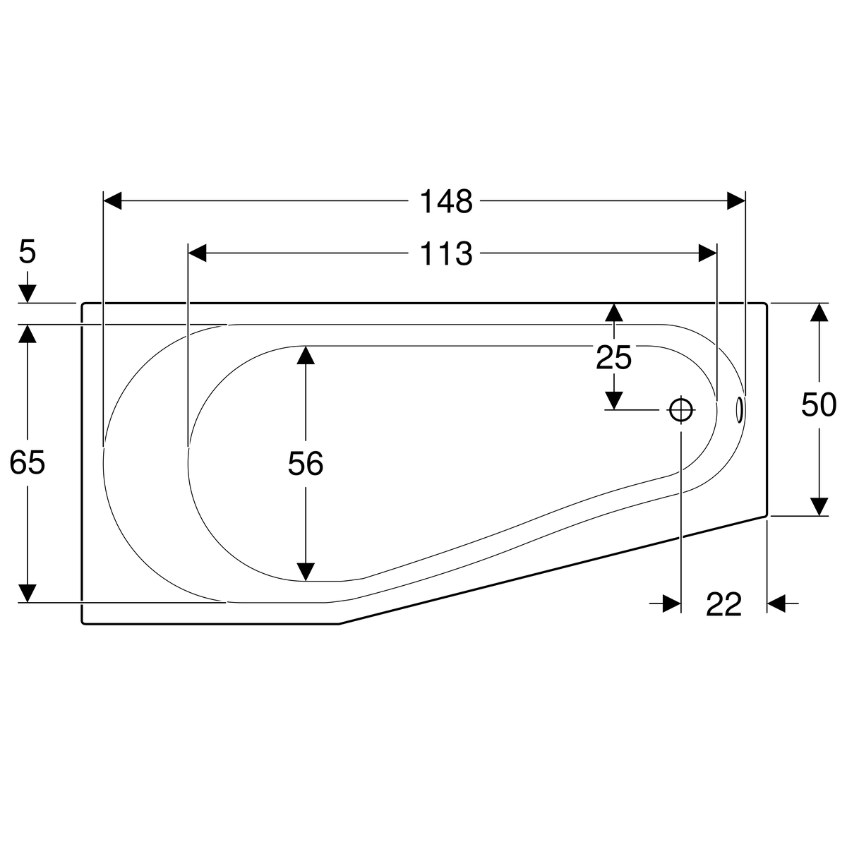 Dit Geberit Renova vijfhoekig bad is een ruimtebesparend bad en is dus geschikt voor als je wel een bad wil, maar een badkamer hebt met afwijkende formaten waardoor je geen rechthoekig bad kan plaatsen. Bij dit Renova vijfhoekig bad loopt de breedte van het bad terug van 75 cm aan de linkerkant naar 50 cm aan de rechterkant. De lengte van het bad is 160cm en de hoogte van het bad is 43cm.