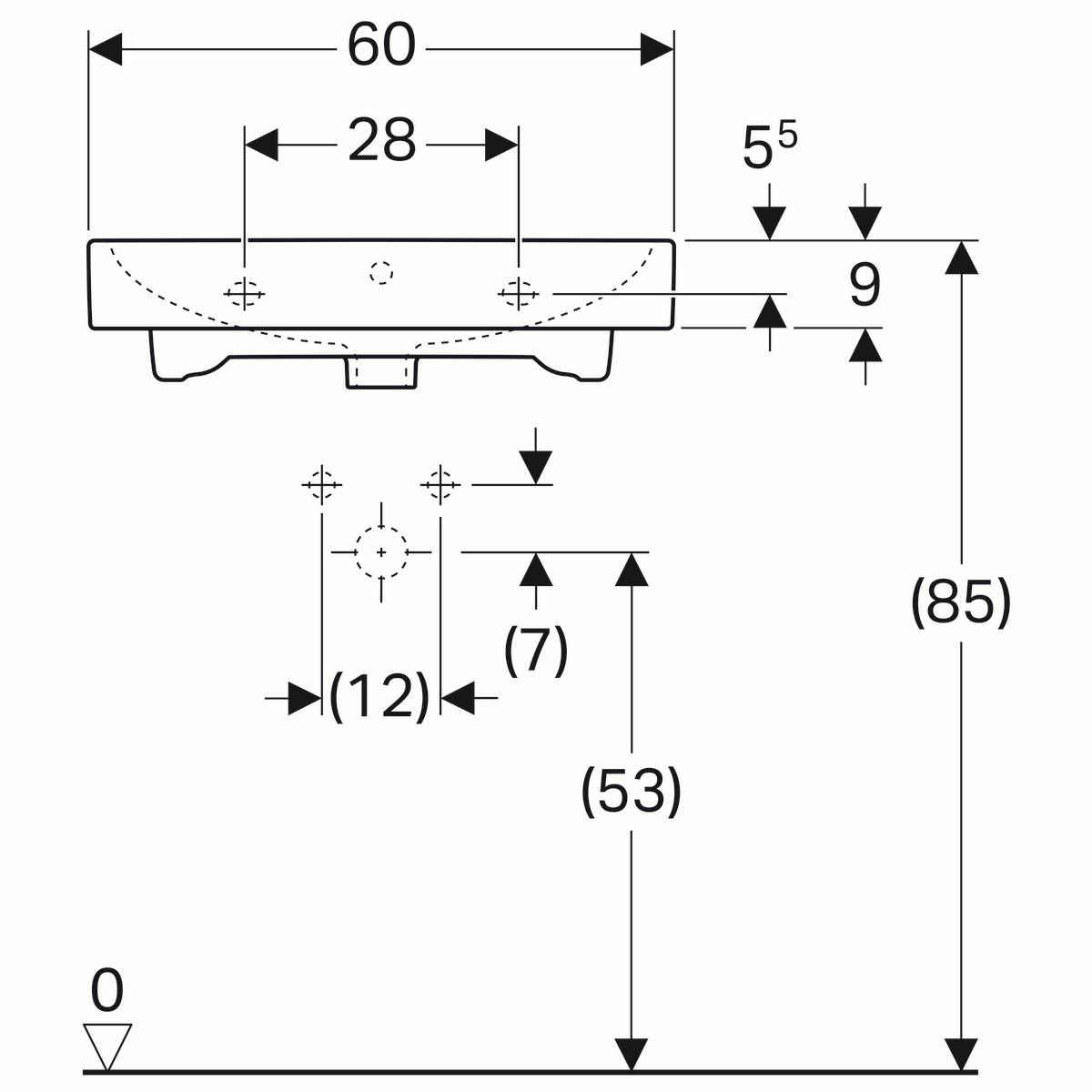 Geberit Icon wastafel 60x48.5x15.5cm 1 wasbak 1 kraangat Midden met overloopgat Keramiek Wit glans