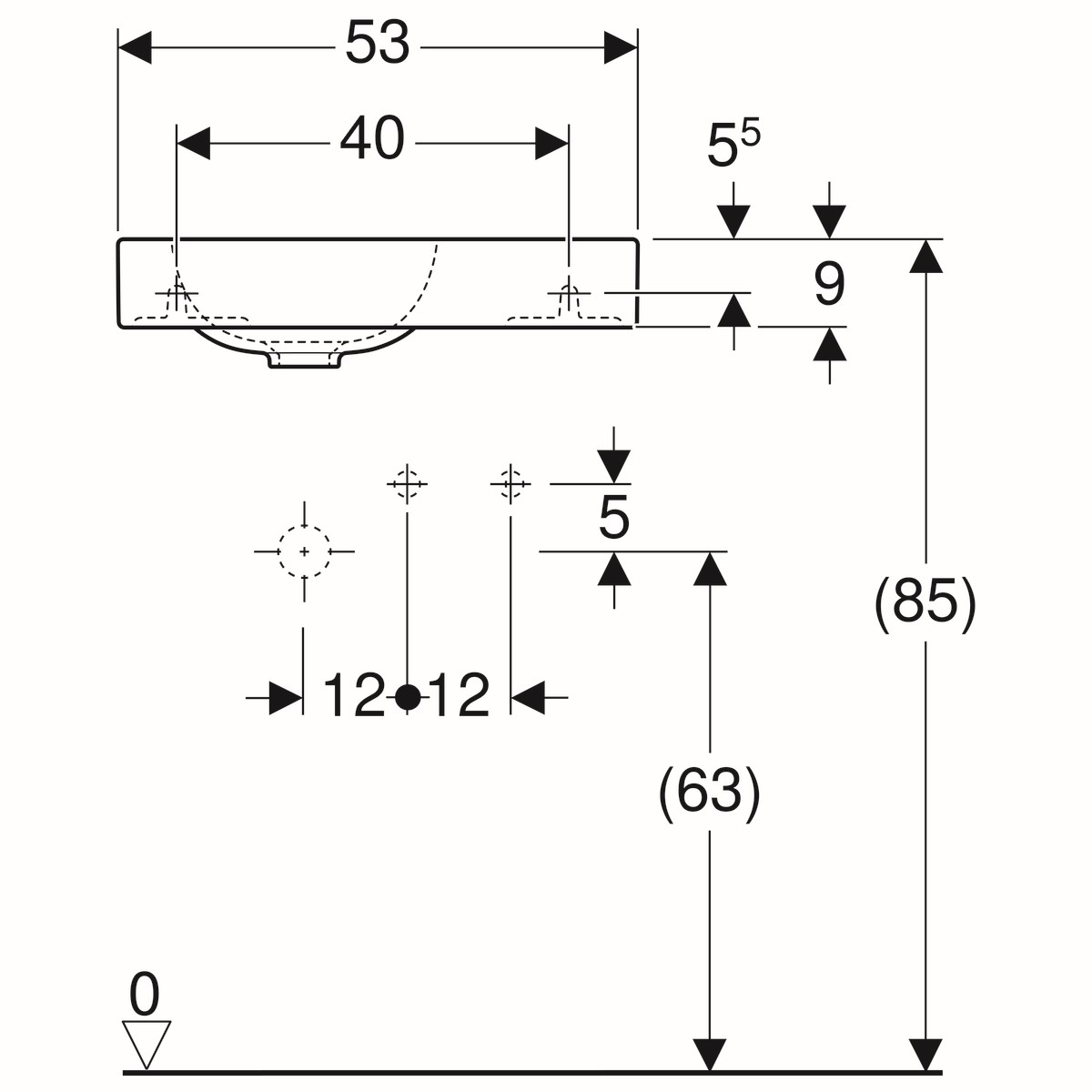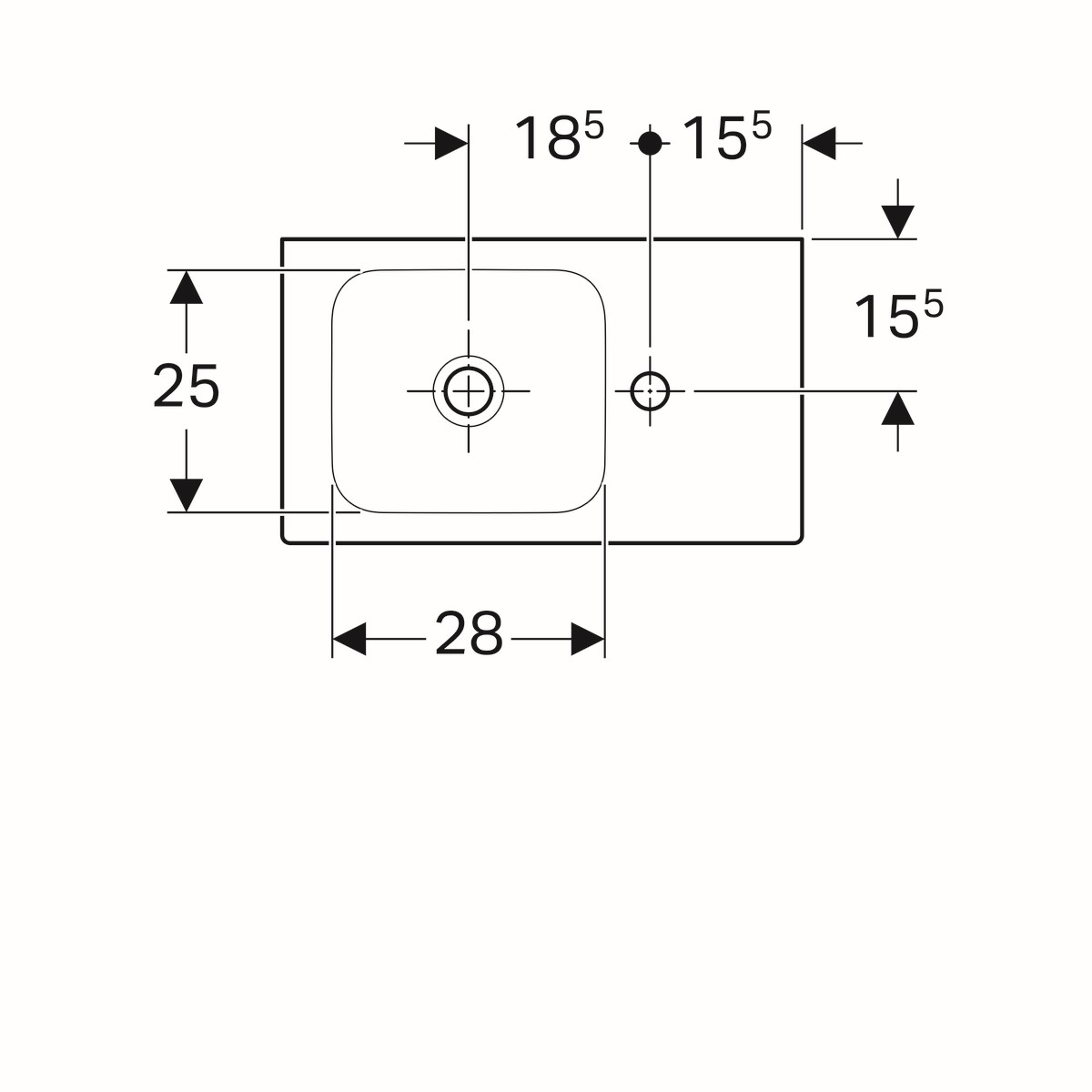 Geberit Icon fontein 53x31x13.5cm 1 wasbak 1 kraangat Rechts zonder overloopgat Keramiek Wit glans