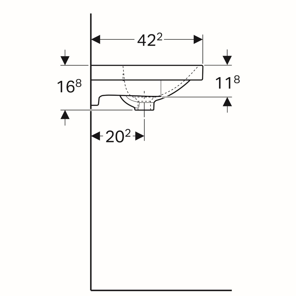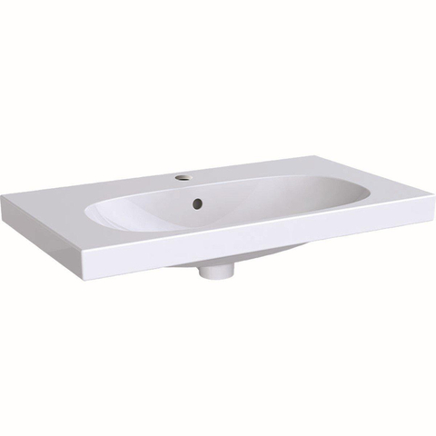 Deze Geberit Acanto wastafel kan naar eigen inzicht gecombineerd worden met een compacte Geberit Acanto wastafel onderbouwkast.