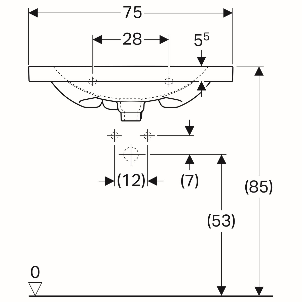 Geberit Acanto wastafel compact met kraangat met overloop 75x42.2x16.8cm wit 500632012
