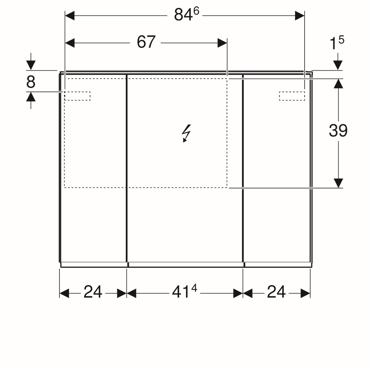 Geberit Option Plus spiegelkast led verlichting 3deuren 90x70x15cm