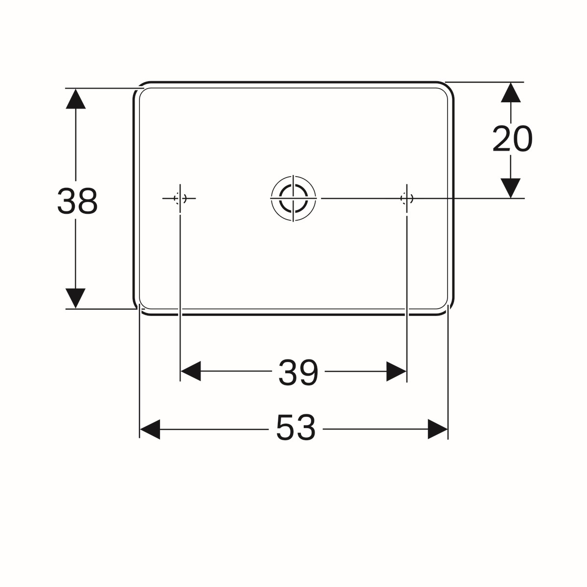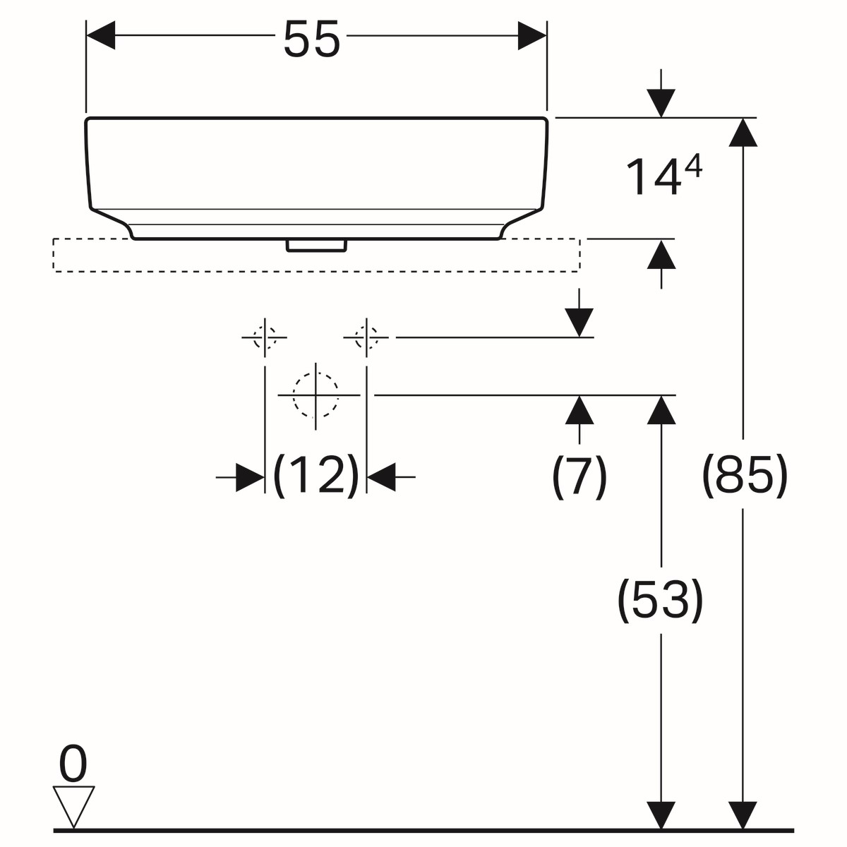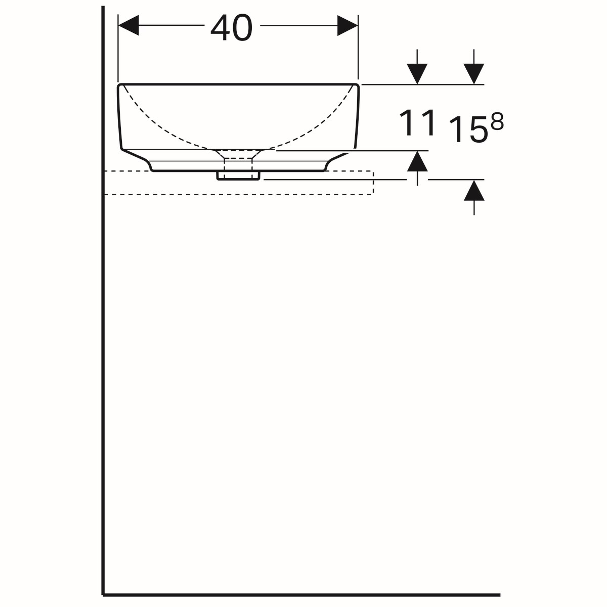 Deze rechthoekig wastafel is 55cm breed, 40cm diep en heeft een hoogte van 15,8cm.