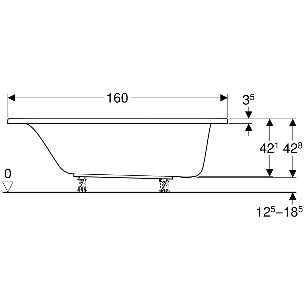 Met de optionele Geberit badpoten kan het bad stevig en op de juiste hoogte worden geplaatst.