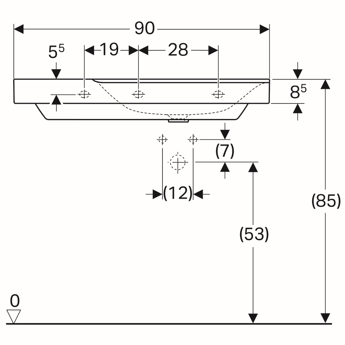 Geberit Xeno2 wastafel 90cm 1 kraangat afleg links tect wit