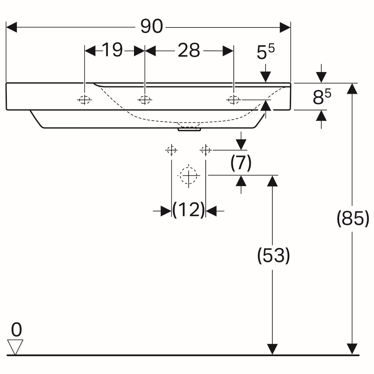 Geberit Xeno2 wastafel 90x48x14cm met kraangat zonder overloop afleg links KeraTect wit