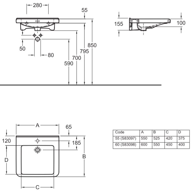 Geberit 300 Comfort Square rolstoelwastafel met kraangat met overloop 55x52.5x15.5cm wit