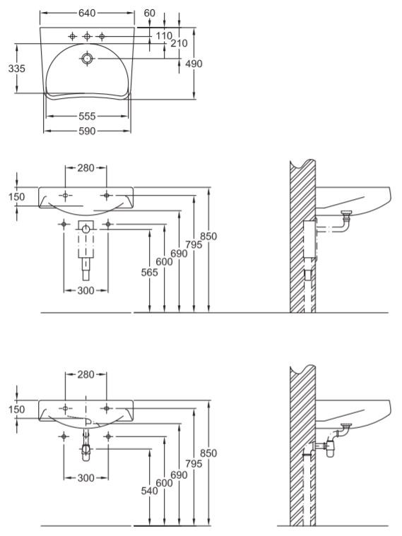 Geberit 300 Comfort Paracelsus rolstoelwastafel zonder kraangat zonder overloop 64x49x18cm inclusief KeraTect wit