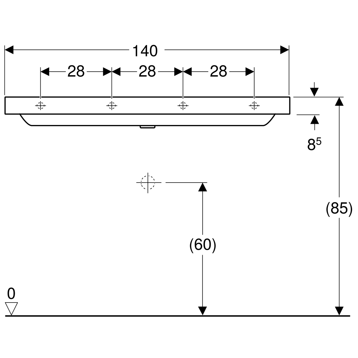 Geberit XENO² wastafel / fontein, keramiek, wit, diepte 480mm, breedte/diameter 1400mm, rechthoekig, met rugwand, hangend, 1 waskommen, 1 gebruiksplaatsen