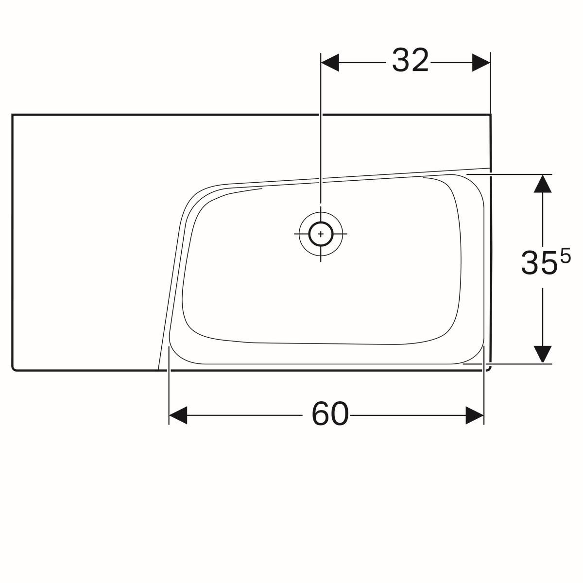 Geberit Xeno2 wastafel zonder kraangat zonder overloop 90x48x14cm m. afleg links m. KeraTect wit