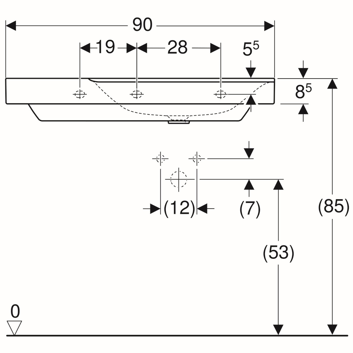 Geberit Xeno2 wastafel 90x48x14cm zonder kraangat zonder overloop afleg links KeraTect wit