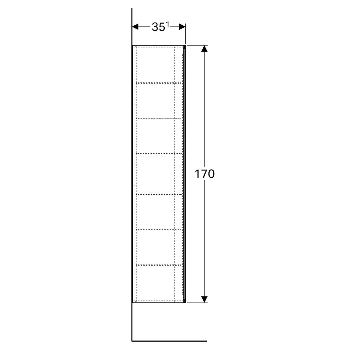 Geberit Xeno2 hoge kast 1 deur en binnenspiegel 170x40x35.1cm links/rechts glanswit