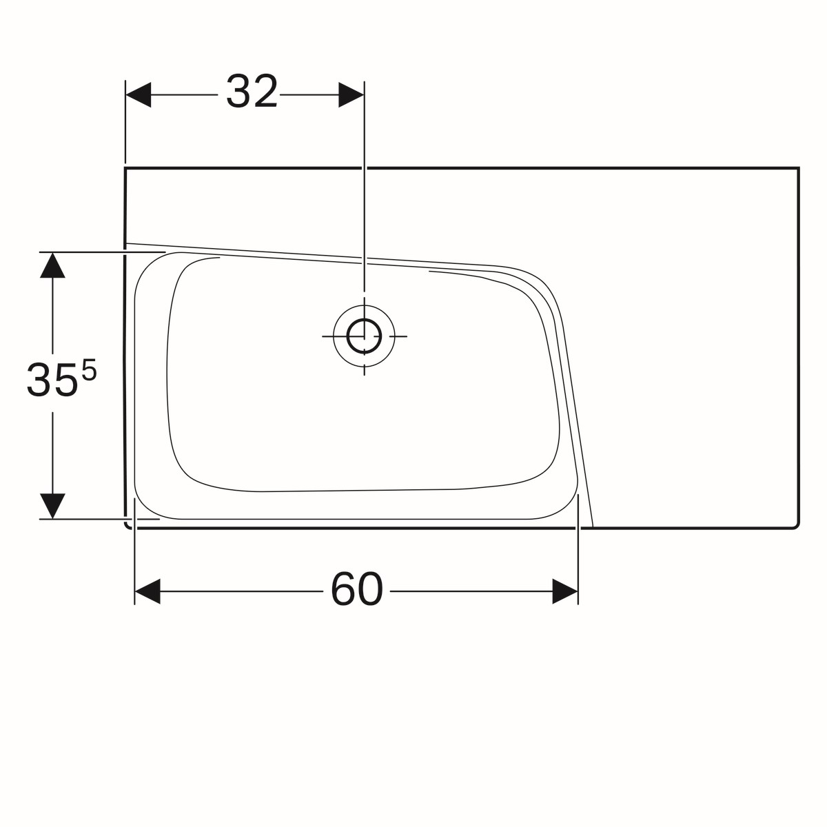 Geberit Xeno2 wastafel 90cm z/kraangat afleg rechts tect wit