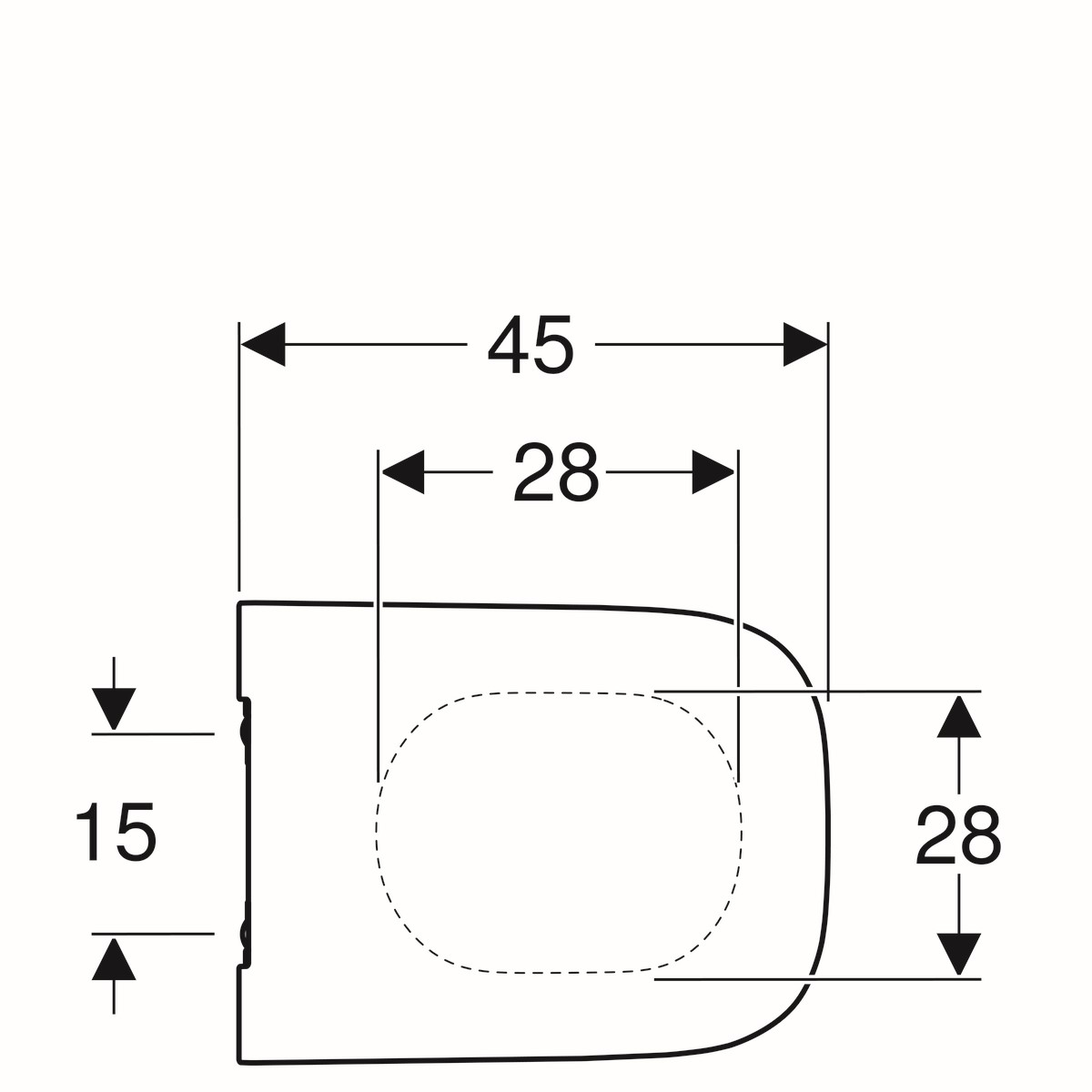De afmetingen van de zitting zijn: 35 cm breed, 45 cm diep en slechts 4,5 cm hoog. De zitting wordt van bovenaf gemonteerd op het toilet.