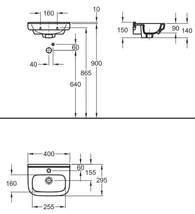 Geberit 300 basic fontein - 40x25x15cm - 1 kraangat - met overloop - wit