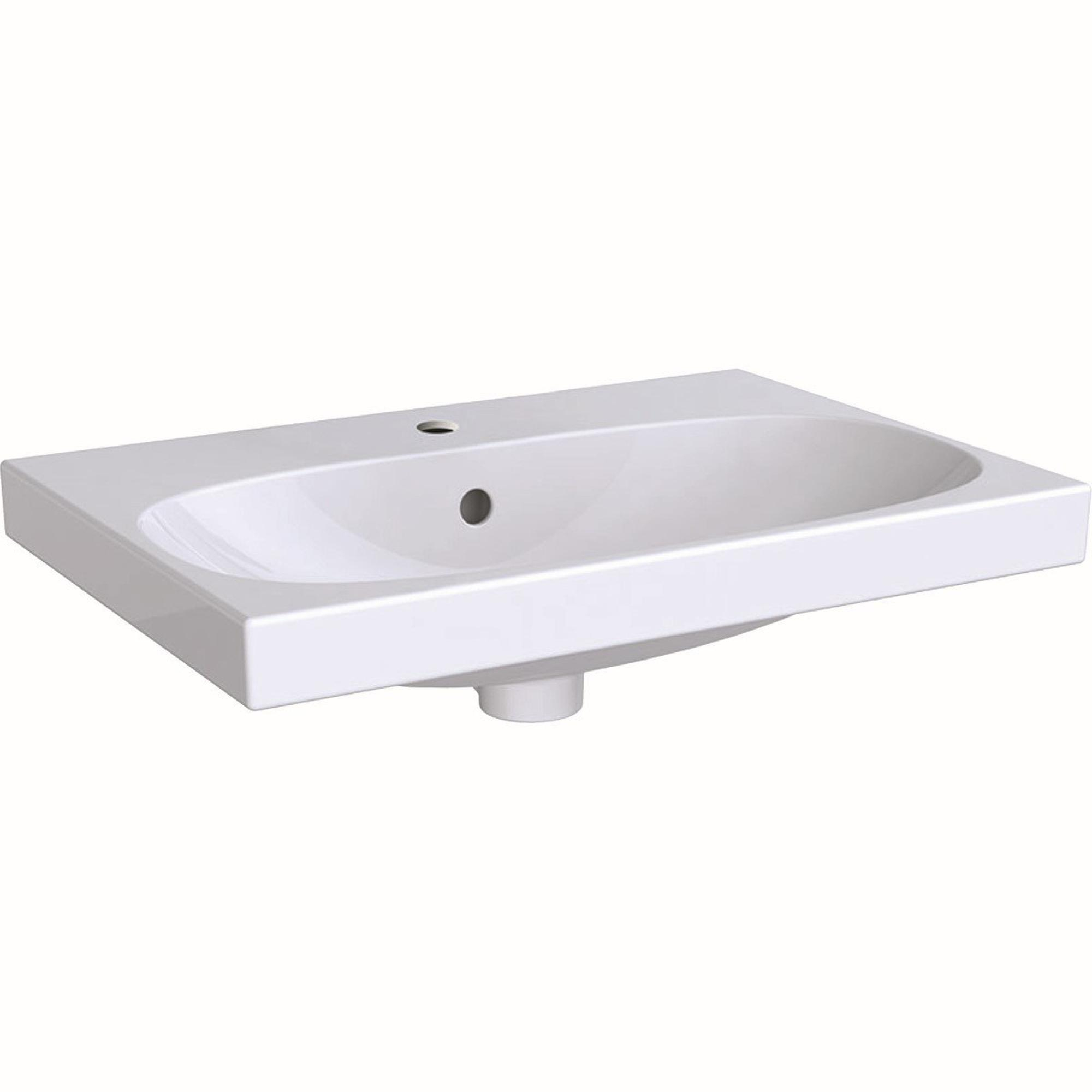 Deze Geberit Acanto wastafel kan naar eigen inzicht gecombineerd worden met een compacte Geberit Acanto wastafel onderbouwkast.