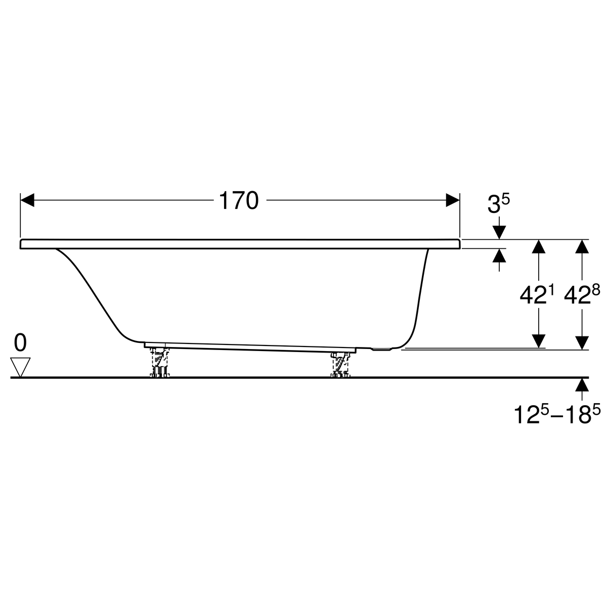 Met de optionele Geberit badpoten kan het bad stevig en op de juiste hoogte worden geplaatst.