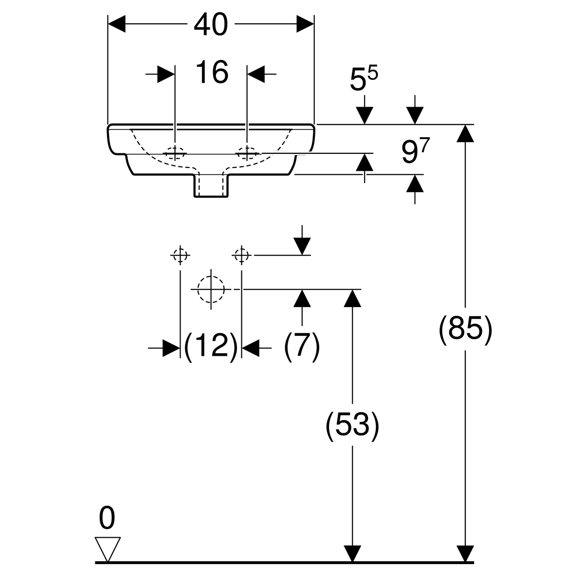 Geberit 300 basic fontein - 40x25x15cm - 1 kraangat - met overloop - Keratect - wit
