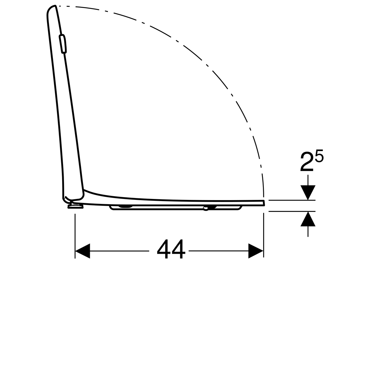 Deze wc-bril is 37.5 x 44 centimeter groot.