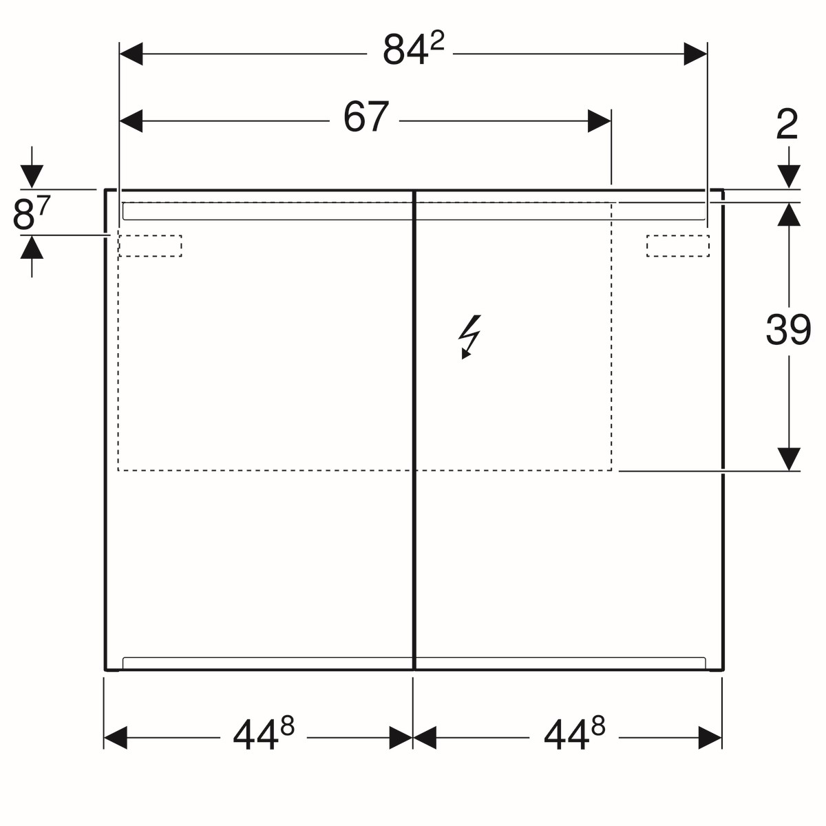 Geberit Option spiegelkast 2 dubbelzijdige spiegeldeuren met led verlichting 90x70x15cm