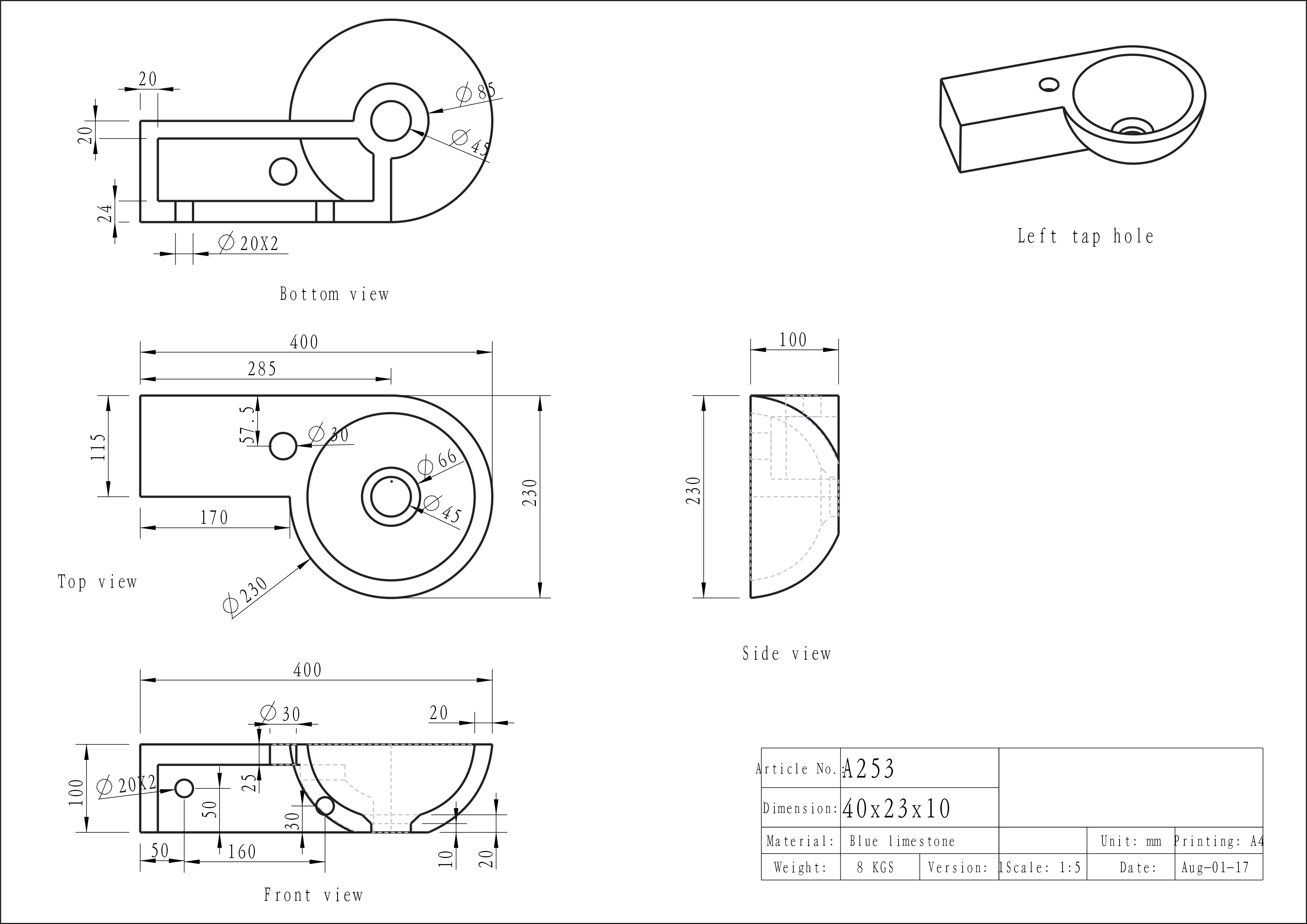 Specificaties fontein Wiesbaden Hardsteen Rond Rechts 40x23x10 cm: