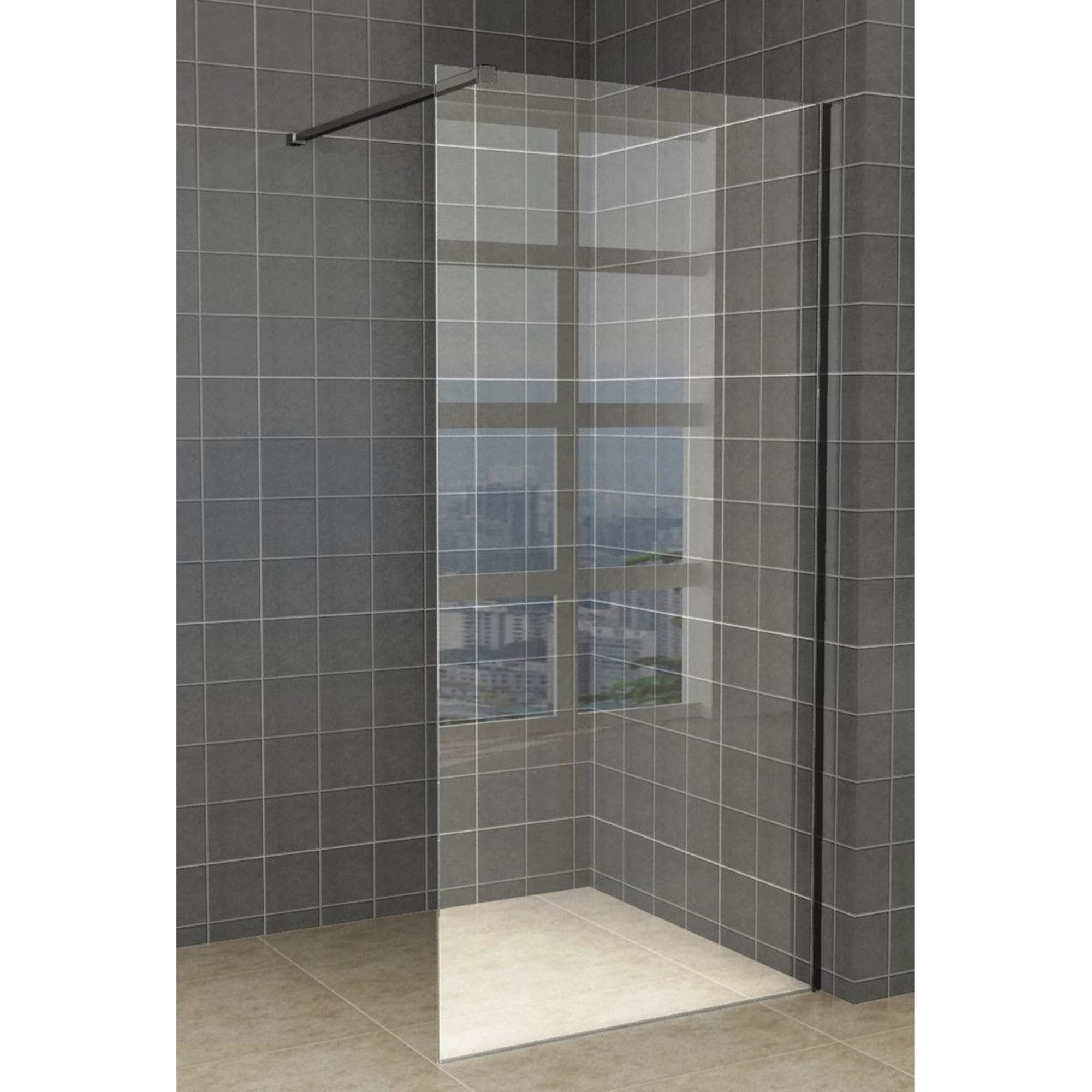 Wiesbaden Slim inloopdouche 60x200cm met 8mm helder glas met zwart profiel en stabilisatiestang