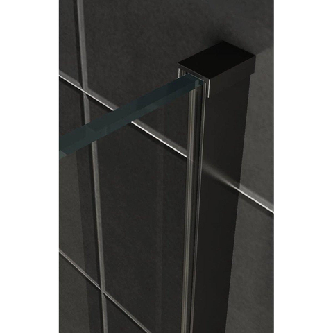Wiesbaden Slim inloopdouche 85x200cm met 8mm helder glas met zwart profiel en stabilisatiestang