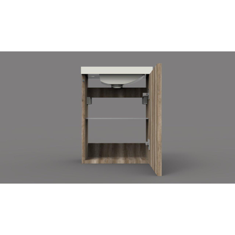 Arcqua Luna Fonteinset 54.3x39.7x21.8cm Canyon Oak met marble fontein met overloop glans wit