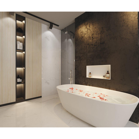 Met een inbouwnis kunt u extra opbergruimte creëren in uw badkamer of doucheruimte. Het voordeel van een inbouwnis is dat het geen extra ruimte kost en de muur doorloopt. Daarnaast geeft het een prachtige, luxe uitstraling. De Crosstone Solid Alcove inbouwnis is gemaakt van solid surface en is afgewerkt in een mat witte kleur.