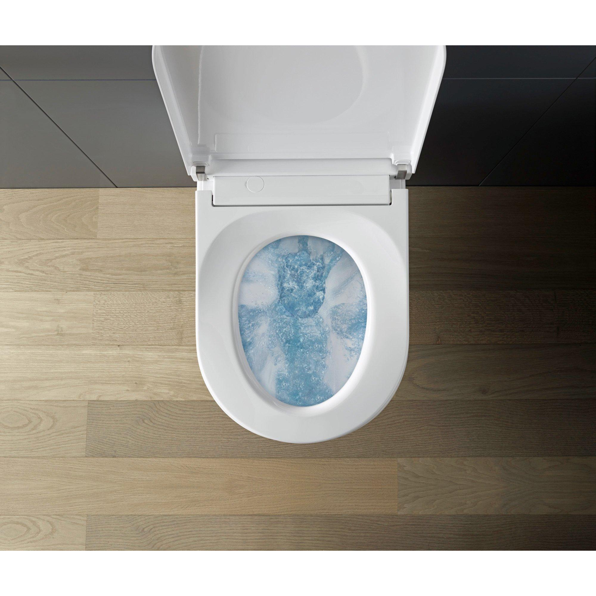De Duravit SensoWash Starck F Lite douchewc is ontworpen met efficiëntie in gedachten. Het geavanceerde spoelsysteem zorgt voor een krachtige en waterbesparende spoeling, terwijl het minimalistische design ruimte bespaart en gemakkelijk te onderhouden is. Dit maakt het een duurzame en praktische keuze voor dagelijks gebruik.