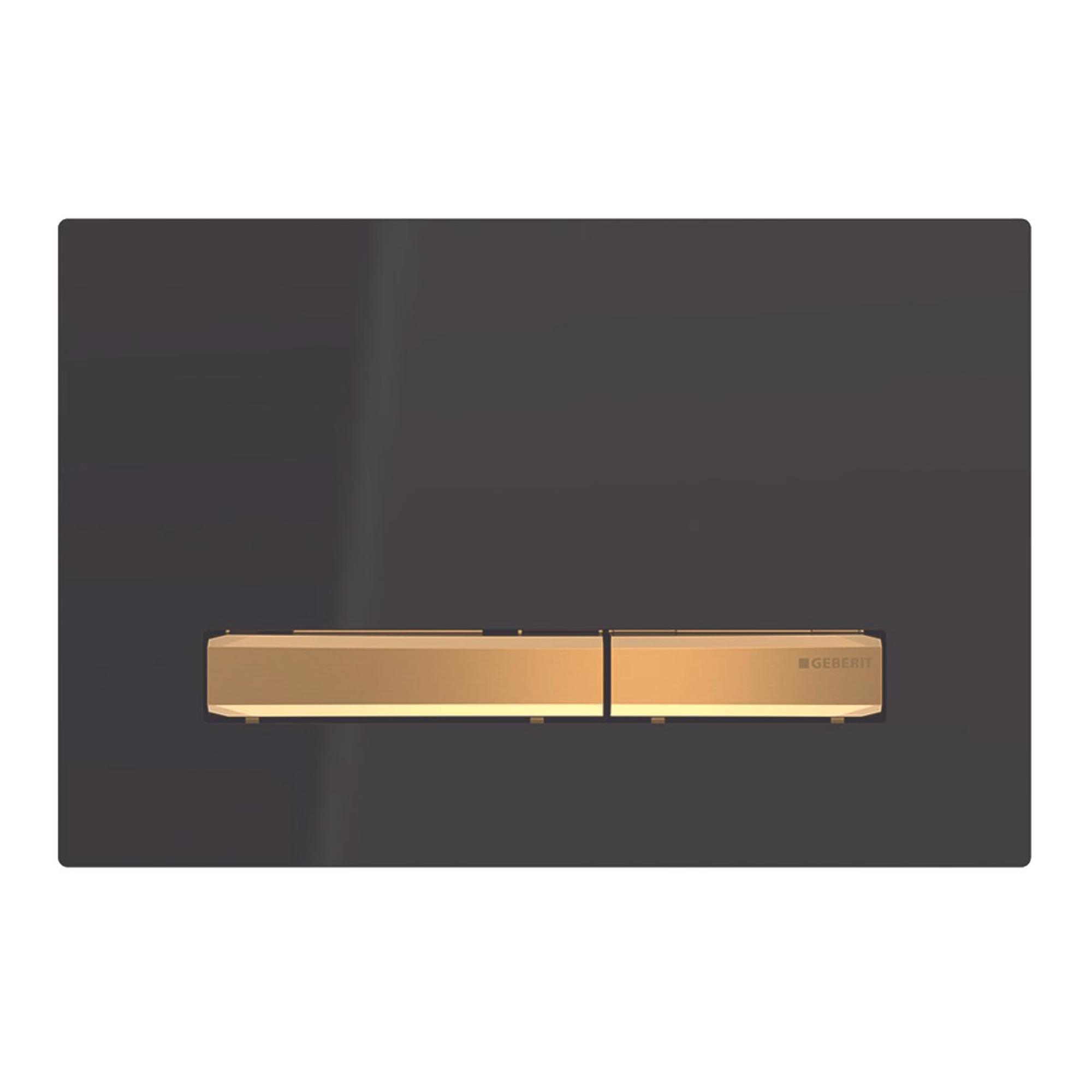 Bekijk een variant in Amsterdam West, Arnhem, Breda, Eindhoven, HeerlenGeberit Sigma50 bedieningplaat, 2-toets spoeling frontbediening voor toilet 24.6x16.4cm messing / zwart