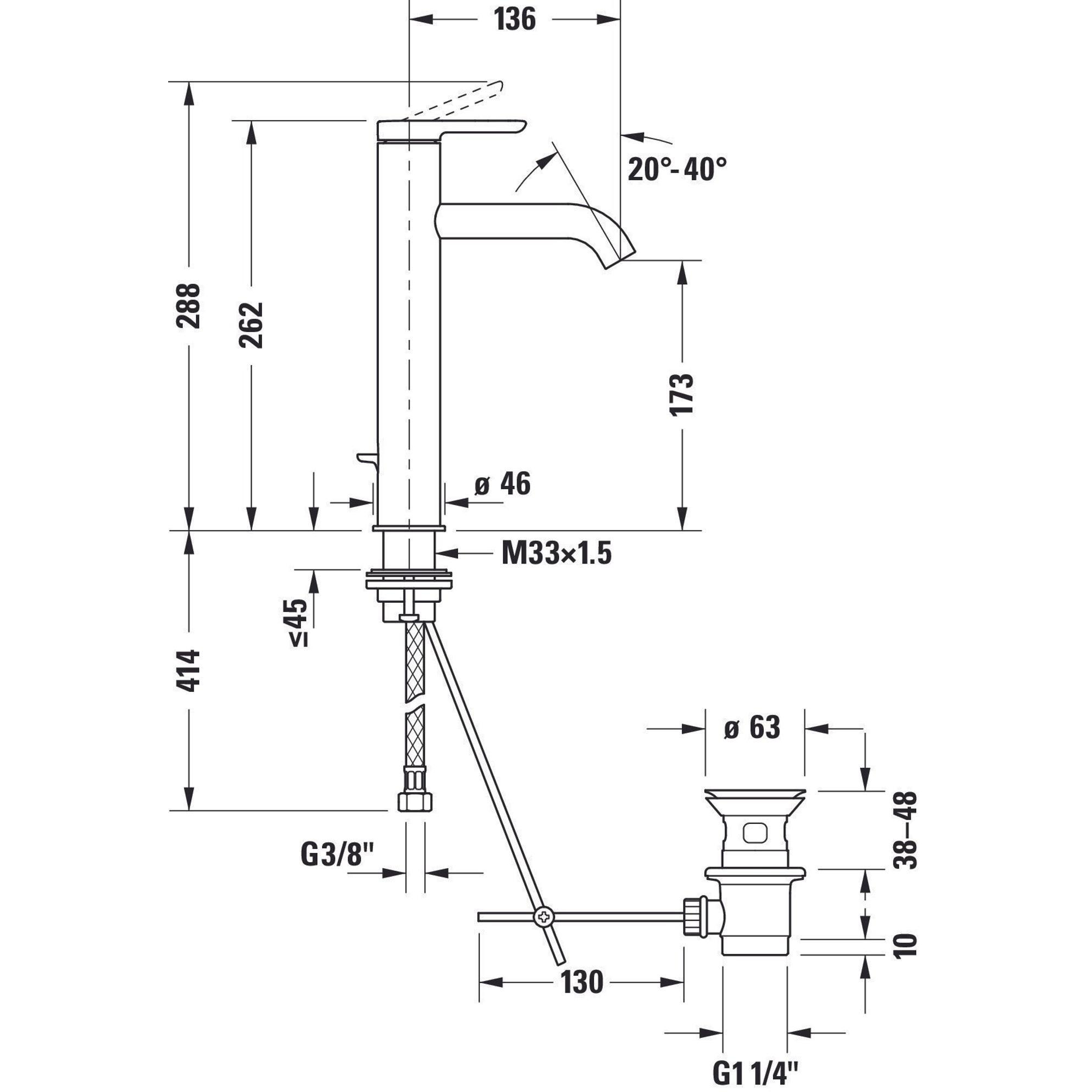 Duravit C.1 wastafelmengkraan met waste L-size chroom
