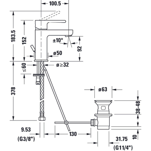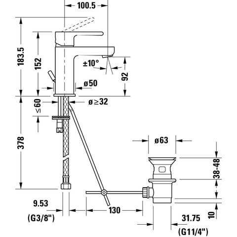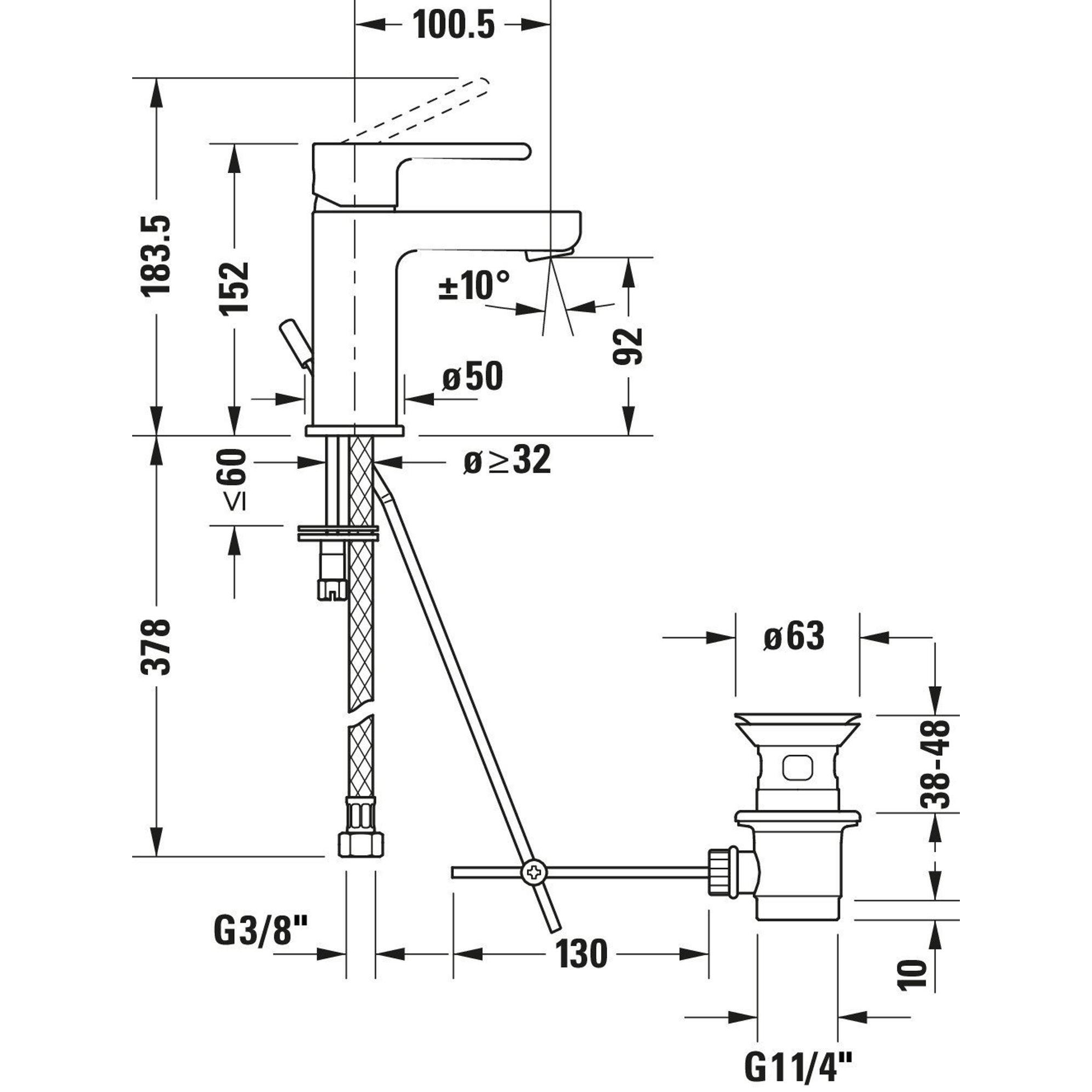 Duravit B.2 wastafelmengkraan met waste S-size chroom