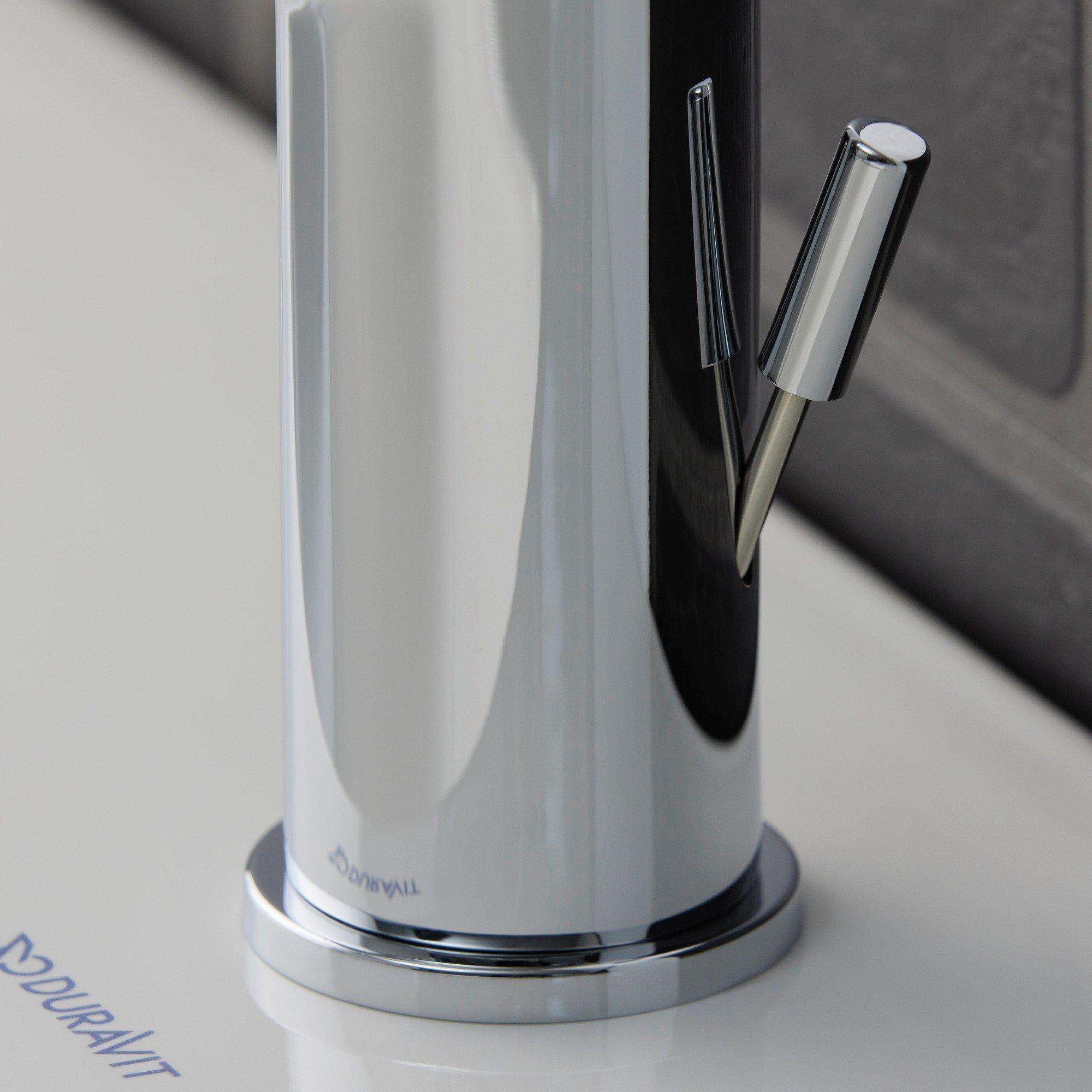 De Duravit B.2 wastafelmengkraan straalt stijl en klasse uit dankzij zijn slanke vorm en glanzende chroomafwerking. Het minimalistische ontwerp past perfect bij eigentijdse badkamers en voegt een vleugje luxe toe aan de ruimte. De kraan is eenvoudig te bedienen en zorgt voor een soepele waterstroom, waardoor je dagelijkse taken in de badkamer een plezier worden.