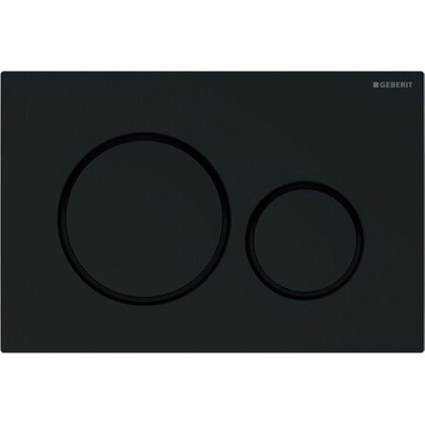 Bekijk een variant in Alkmaar, Amsterdam West, Arnhem, Breda, Eindhoven, Heerlen, Middelburg, Rosmalen, Tilburg, Uden, WateringenGeberit sigma20 bedieningplaat - 2-toets spoeling - frontbediening voor toilet - 24.6x16.4cm - plaat zwart glans & ring zwart mat