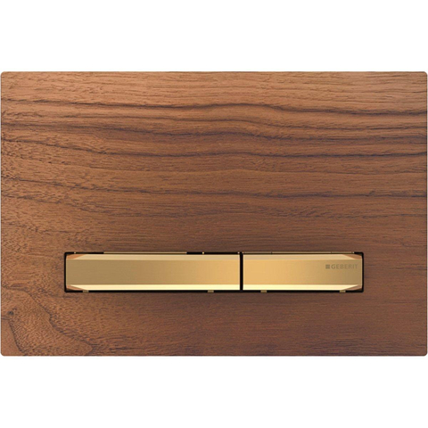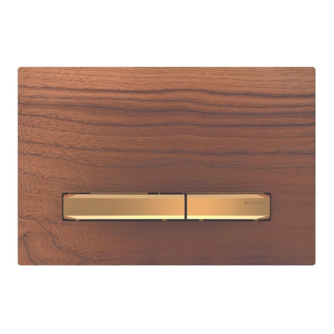 Geberit Sigma50 bedieningplaat, 2-toets spoeling frontbediening voor toilet 24.6x16.4cm messing / amerikaans noten