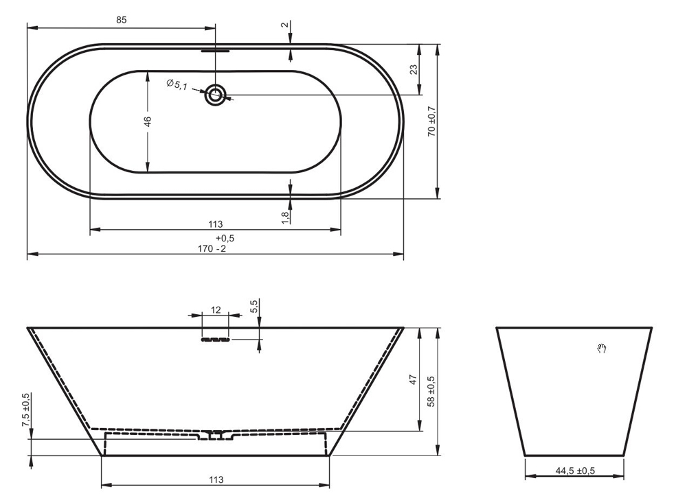 Ervaar pure luxe met dit Riho Barcelona vrijstaand bad. De ruime afmetingen van 170x70cm bieden voldoende ruimte om heerlijk te ontspannen tijdens een rustgevend bad. Het solid surface materiaal voelt niet alleen comfortabel aan, maar zorgt er ook voor dat het bad bestand is tegen krassen, vlekken en chemicaliën, waardoor het langdurig mooi blijft.