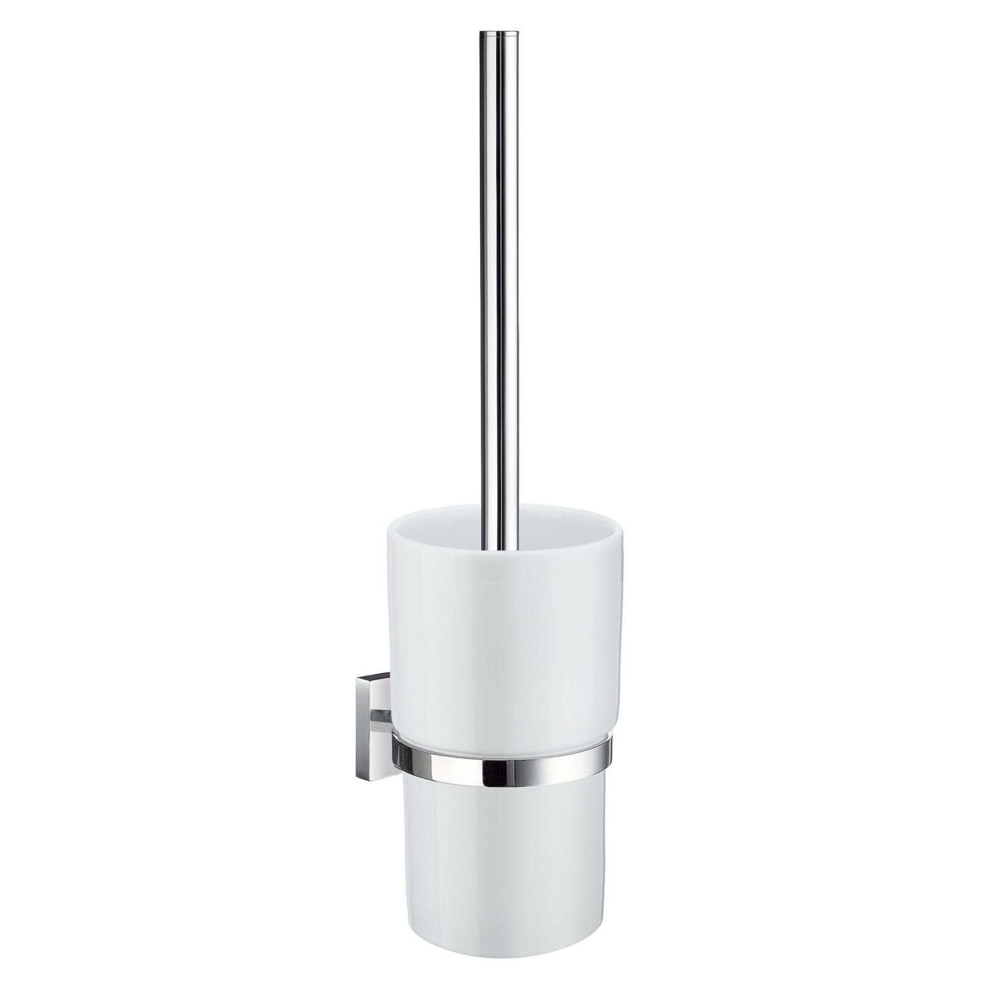 Smedbo House WC-borstelgarnituur - zelfklevend / boren - Massief messing Chroom/Porcelein
