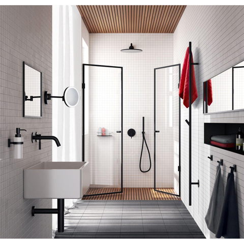 De Smedbo Dry Handdoekradiator is ontworpen met een moderne uitstraling die perfect past bij eigentijdse badkamers. De combinatie van mat zwart en roestvrij staal geeft een trendy en luxe gevoel aan de ruimte. Deze radiator voegt niet alleen functionaliteit toe, maar dient ook als een decoratief element dat de algehele uitstraling van de badkamer versterkt.