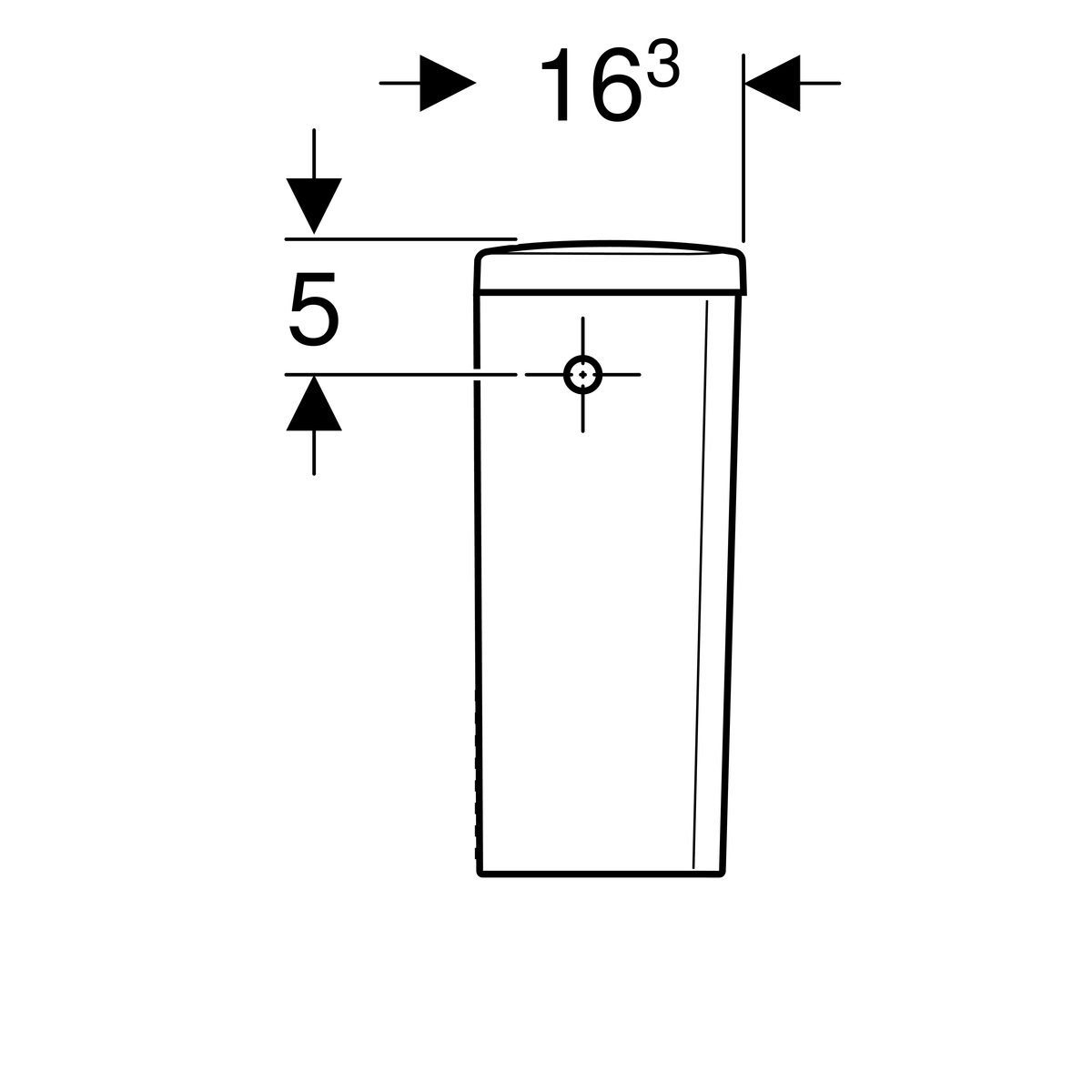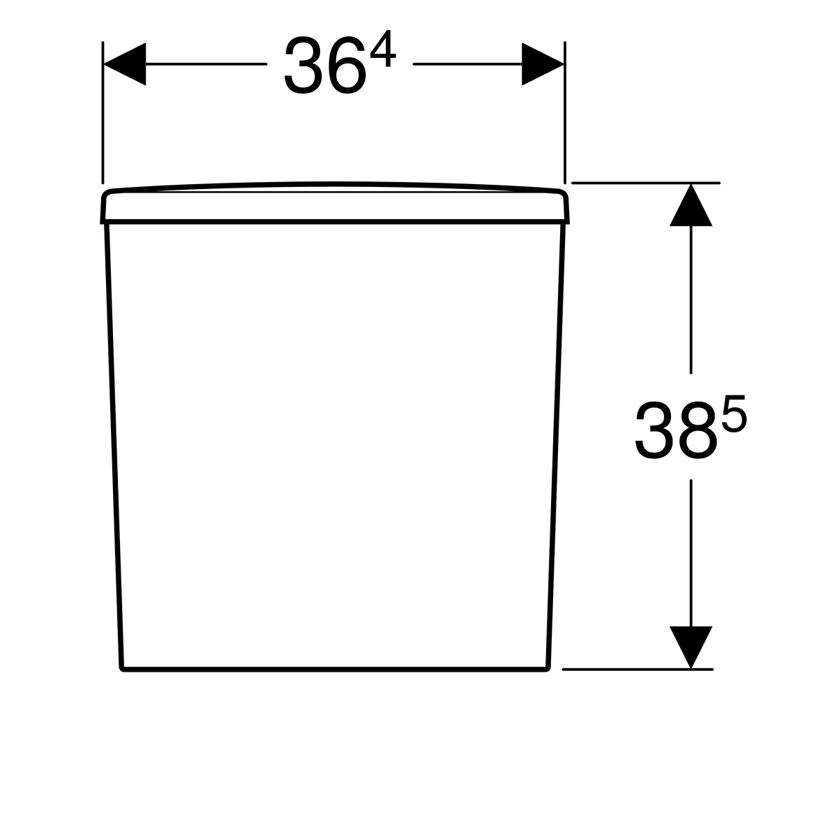 De hoogte van het reservoir is 38,5cm, de breedte is 36,4 cm en de diepte is 16,3cm.