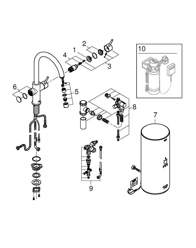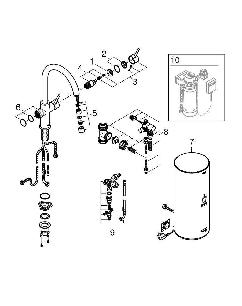 reservoir voor warm* en kokend heet water* bij gebruik met mengventiel