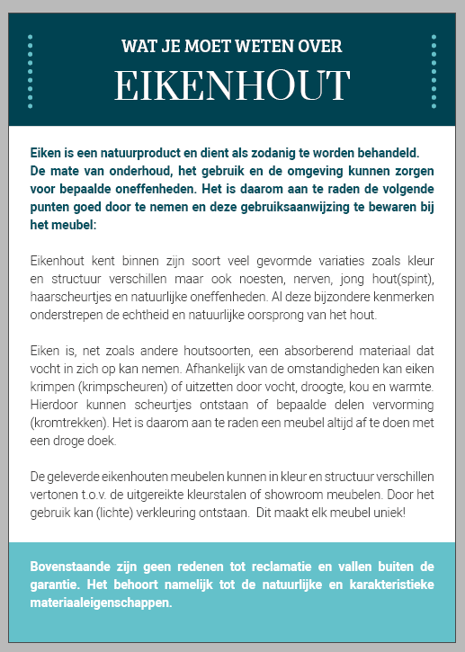 | Kleur | Eiken naturel | |