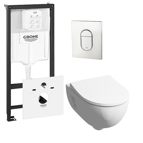 Geberit 300 basic toiletset inclusief Grohe inbouwreservoir en Grohe Arena bedieningsplaat chroom