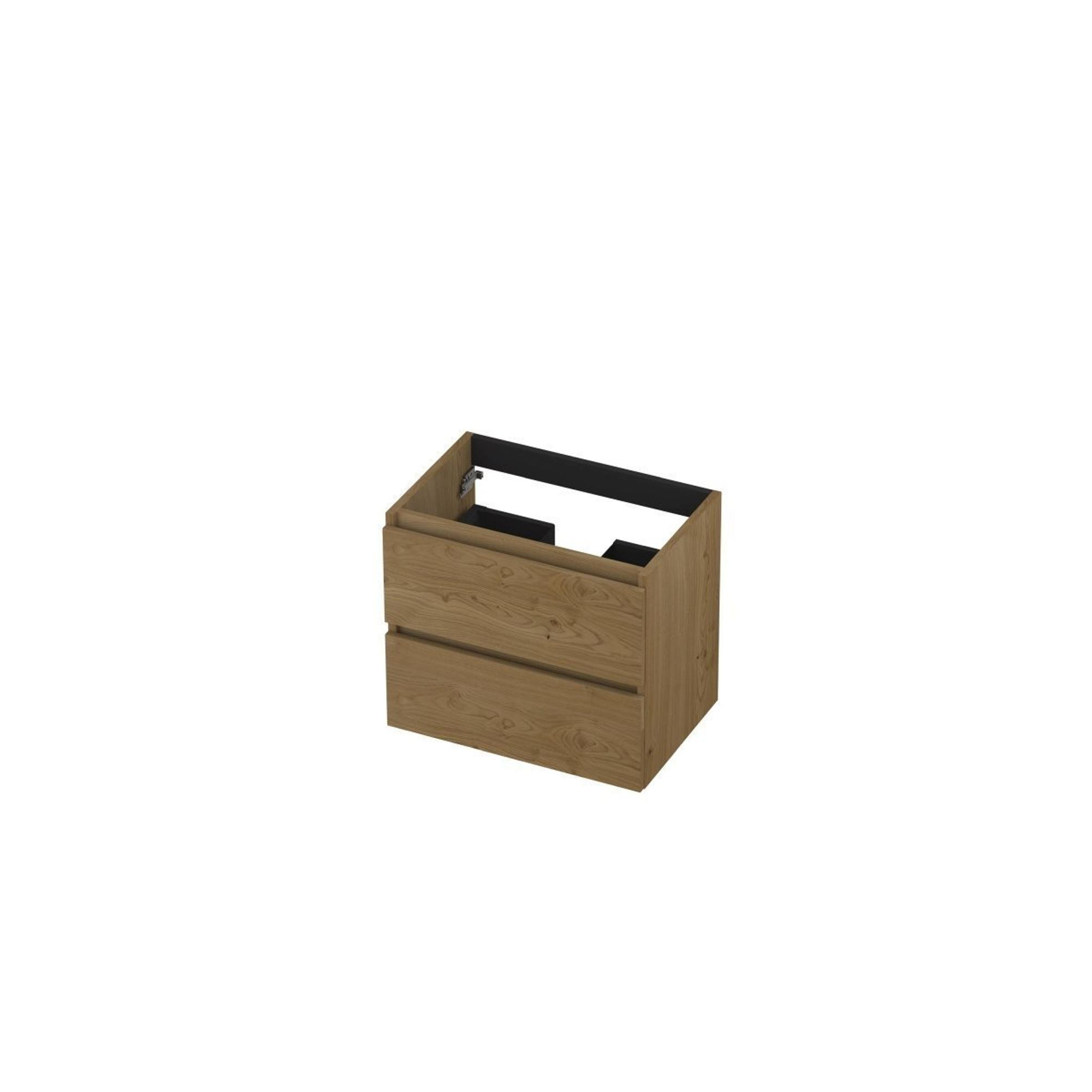 INK Fineer Wastafelonderkast - 60x40x52cm - 2 lades - greeploos - houten keerlijst - MDF Fineer Natur
