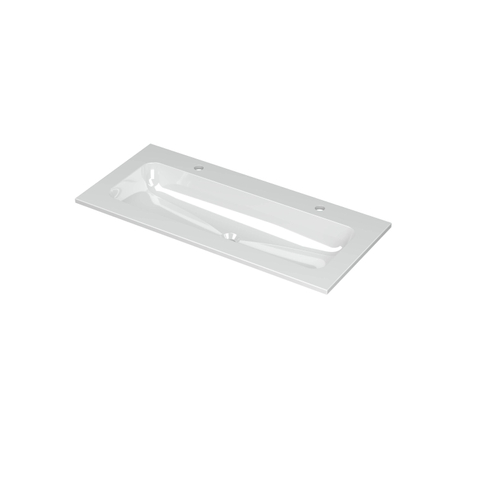 INK Aspekt wastafel - 100x45x1.5cm - 1 wasbak - 2 kraangaten - porselein wit glans