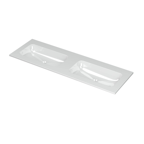 INK Aspekt wastafel - 140x45x1.5cm - 2 wasbakken - 0 kraangaten - porselein wit glans