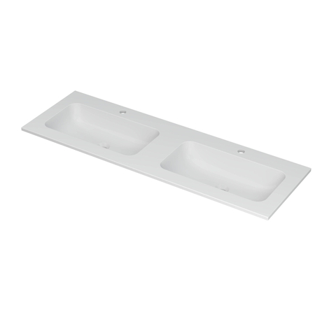INK Aspekt wastafel - 140x45x1.5cm - 2 wasbakken - 2 kraangaten - porselein wit mat
