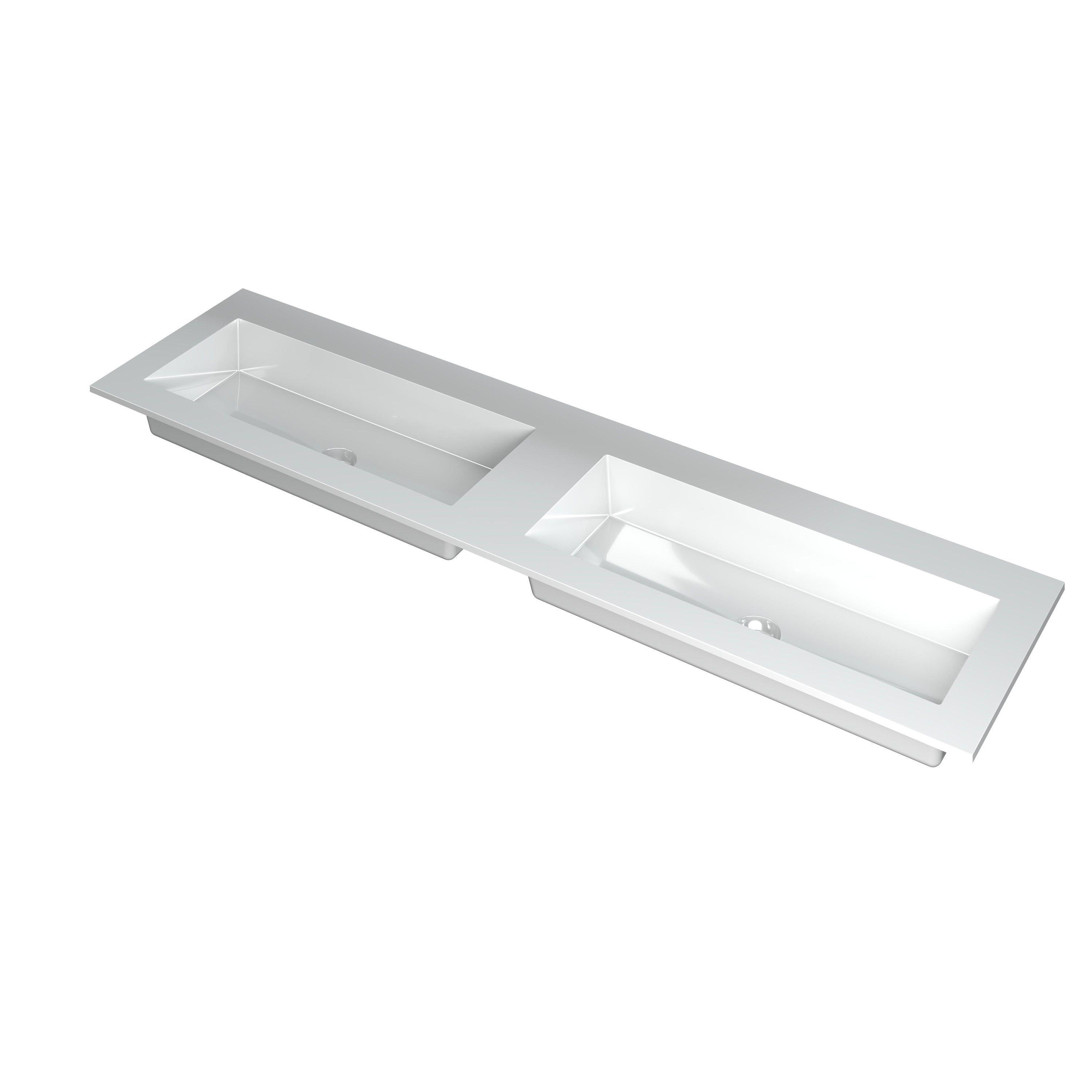 INK Kraft wastafel - 180x45x1cm - 2 wasbakken - 0 kraangaten - wit glans
