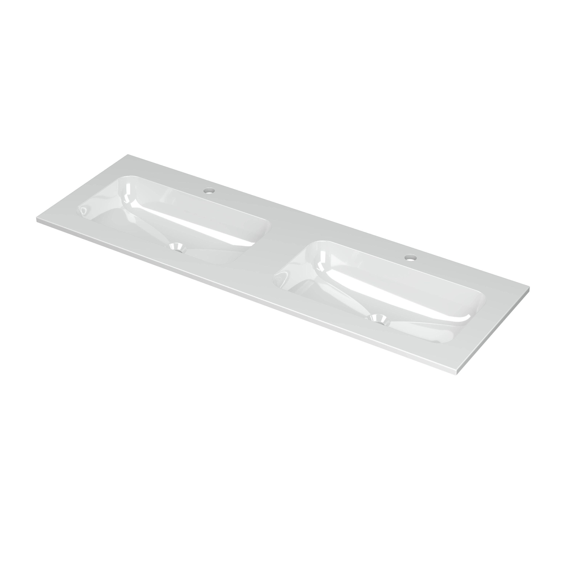 INK Aspekt wastafel - 140x45x1.5cm - 2 wasbakken - 2 kraangaten - porselein wit glans